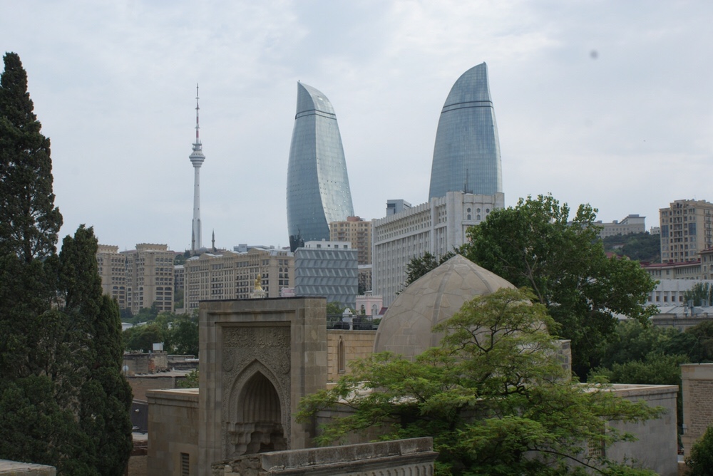 Baku, a cidade do sol, é agora a cidade das Flame Tower, três infinitos arranha-céus em forma de chama que abusam do vidro e que desde 2012 fazem parte da paisagem da cidade, sem deixar de respeitosamente terem por vizinhos próximos uma mesquita e um parque com um cemitério que é um memorial das vítimas do exército vermelho em 1990 e do conflito do Nagorno.