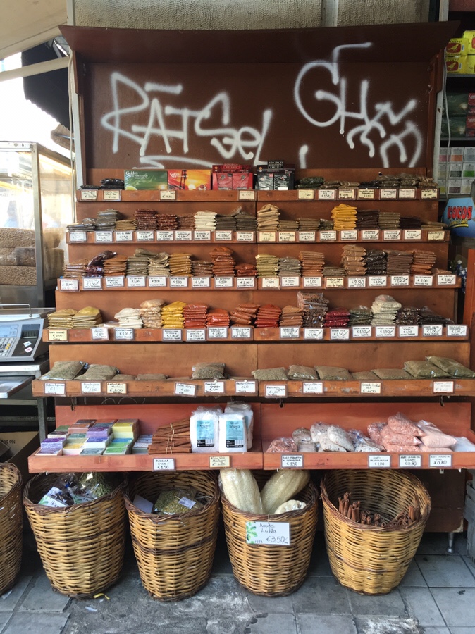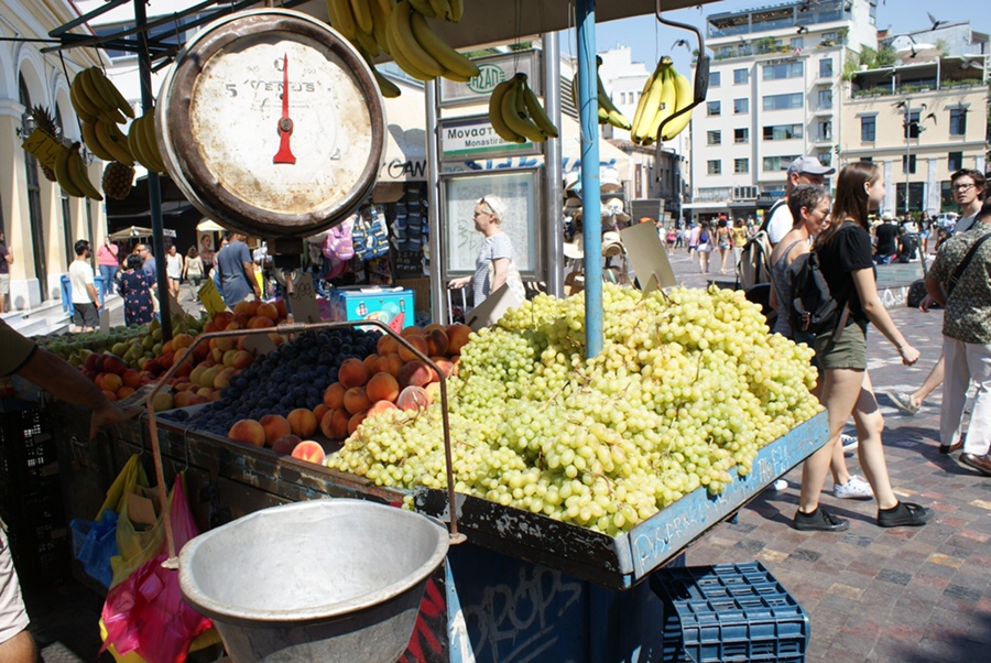 E, depois, existe uma série de terraços para serem vividos. Atenas é, também, a cidade dos terraços transformados em bares, restaurantes ou até festas espontâneas. Monastiraki pode ser o coração da cidade, perto de todos os demais bairros, lugares históricos, lojas e restaurantes. Mas se queremos passar uma noite de sono tranquila há que pensar duas vezes antes de o escolher como lugar de estadia, sabemo-lo agora: no nosso prédio de 7 andares semi-abandonado com apartamentos a serem progressivamente transformados em alojamento local estava a ser dada uma festa com música alta até às 5 da manhã. Não nos juntámos a ela, quase demos os bons-dias ao sem abrigo que lá permaneceu a dormir depois da festa e quando relatámos o facto a quem nos alugou o apartamento recebemos, juntamente com um encolher de ombros, a resposta de que estávamos em Monastiraki, é Verão, o pessoal gosta de festas.