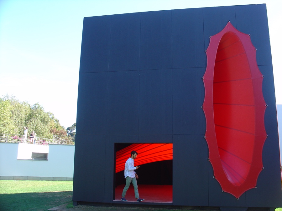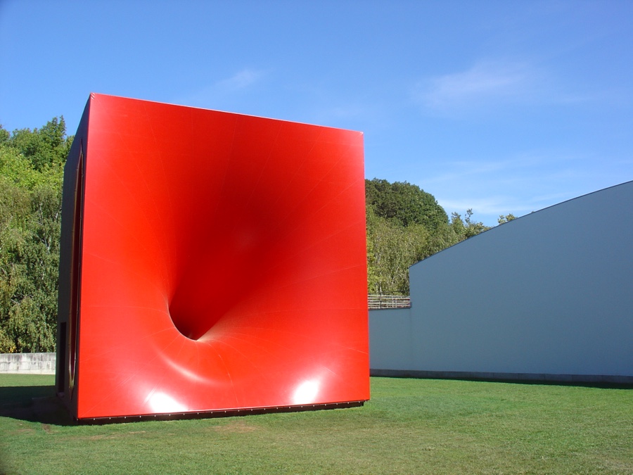 Logo à entrada de Serralves apresenta-se-nos a obra “Corpo seccional preparando-se para uma singularidade monádica”. Seja lá o que isso for. E observando o enorme cubo vermelho e preto com um buraco no meio não se fica a perceber muito mais (será uma vagina? De assexuada é que a Fundação não pode ser acusada). Mas a estética e o contraste das sua cores vivas com o verde da relva do jardim e o branco do museu está muito bem conseguida. Aliás, Kapoor assume mesmo que a localização desta obra foi propositada para haver um diálogo com o edifício projectado por Álvaro Siza Vieira.