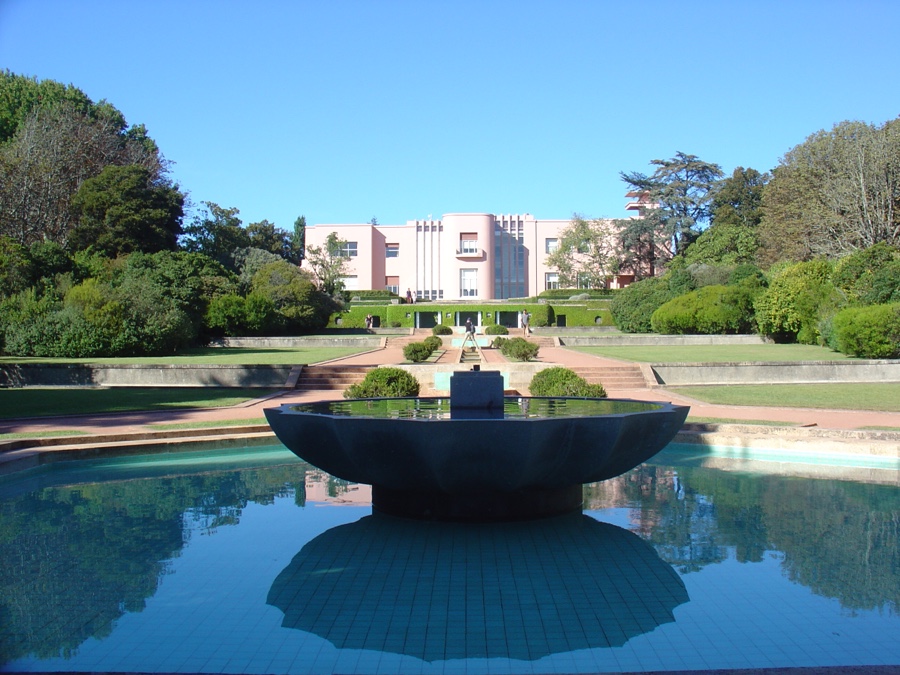 E em breve chegamos à Casa de Serralves, um dos melhores exemplos de arquitectura art déco no nosso país. Obra do arquitecto José Marques da Silva, foi concluída em 1940 a mando do 2º Conde de Vizela que mais tarde alienou a propriedade ao Conde de Riba de Ave. Daí que os vizinhos de Serralves ainda a conheçam como a Casa do Conde. Esta era, pois, uma propriedade privada e burguesa. O 2º Conde de Vizela havia herdado a Quinta do Lordelo e ficado com a Quinta do Mata Sete por permuta, as quais juntamente com os jardins da Casa de Serralves e o Museu de Arte Contemporânea (1996) formam hoje a totalidade do Parque. A história da Fundação de Serralves entra por aqui adentro quando após 1974 a cidade do Porto começa a sentir imprescindível a criação de um espaço onde se expusesse a arte da época e desse voz à cena artística local. O Estado português adquiriu assim em 1986 a Casa de Serralves e jardins – elementos inequivocamente modernistas no Porto de então – e quintas envolventes e em 1989 é criada a Fundação. Era no edifício rosa da Casa de Serralves que tinham lugar as exposições da Fundação até à construção do edifício branco de Siza, hoje Museu de Arte Contemporânea, inaugurado em 1999.