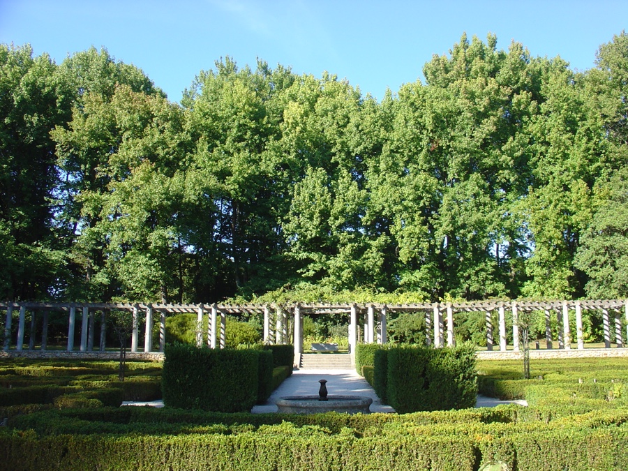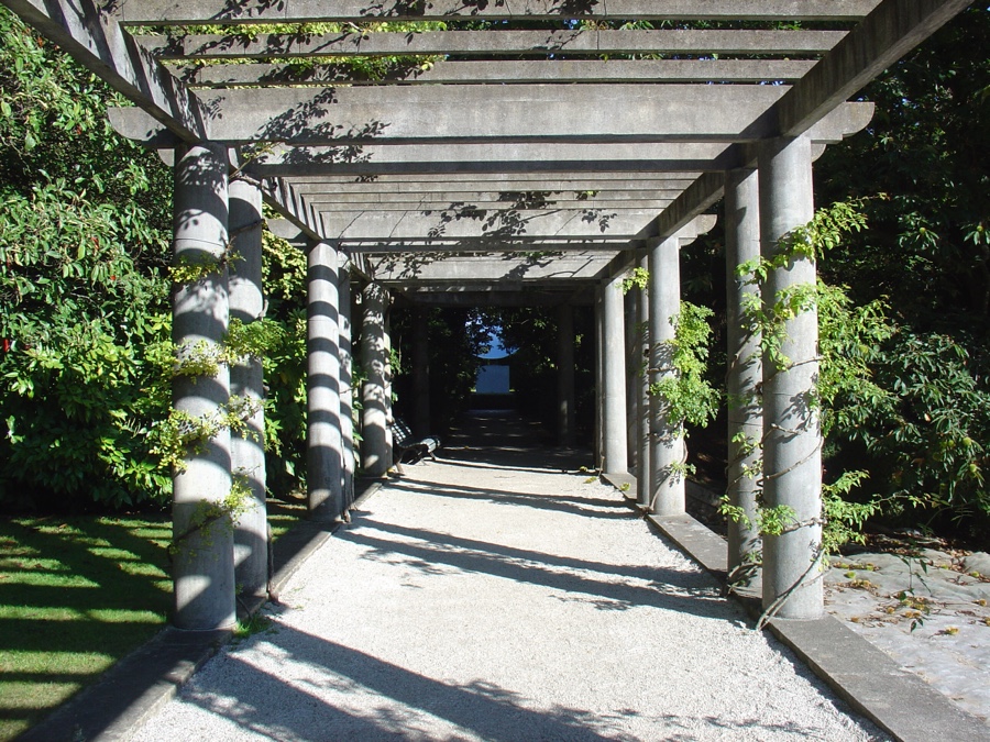 E aqui perto fica o belo Roseiral e a sua elegante Pérgola. Pela sua colunata somos transportados até ao Jardim do Relógio Sol.