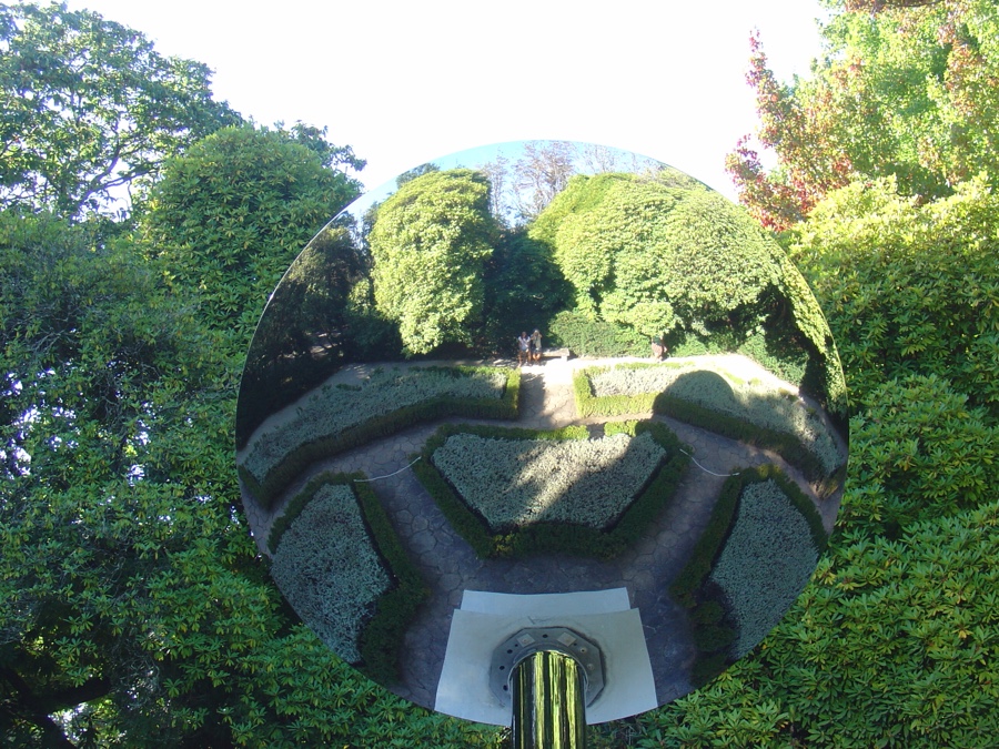 É aqui que encontramos a nossa terceira obra de Kapoor, “Espelho do Céu”. É um espelho côncavo em aço inoxidável que reflecte tudo à sua volta. O tudo à sua volta é maioritariamente a natureza, as árvores e o céu, um passarinho que por ali voe. Ou um avião. Ou as pessoas que por aqui deambulem ou se sentem num dos bancos deste jardim.