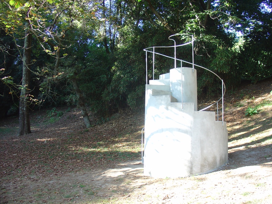 É nesta zona mais baixa do Parque, por entre o lago, a vegetação cerrada e o prado, que descobrimos outra obra de Kapoor. “Linguagem das Aves”, feita este ano especialmente para Serralves, quase que passava despercebida. Tirando partido da também variedade de espécies de aves, esta escultura é como que um pedestal que serve de posto para chamar e falar com os pássaros. Esta forma escultórica foi inspirada no minarete da Grande Mesquita de Samarra, no Iraque – Anish Kapoor é filho de mãe judia iraquiana e de pai hindu – e a ideia de chamamento de pássaros nas memórias de um chamador de corvos na sua Índia natal.