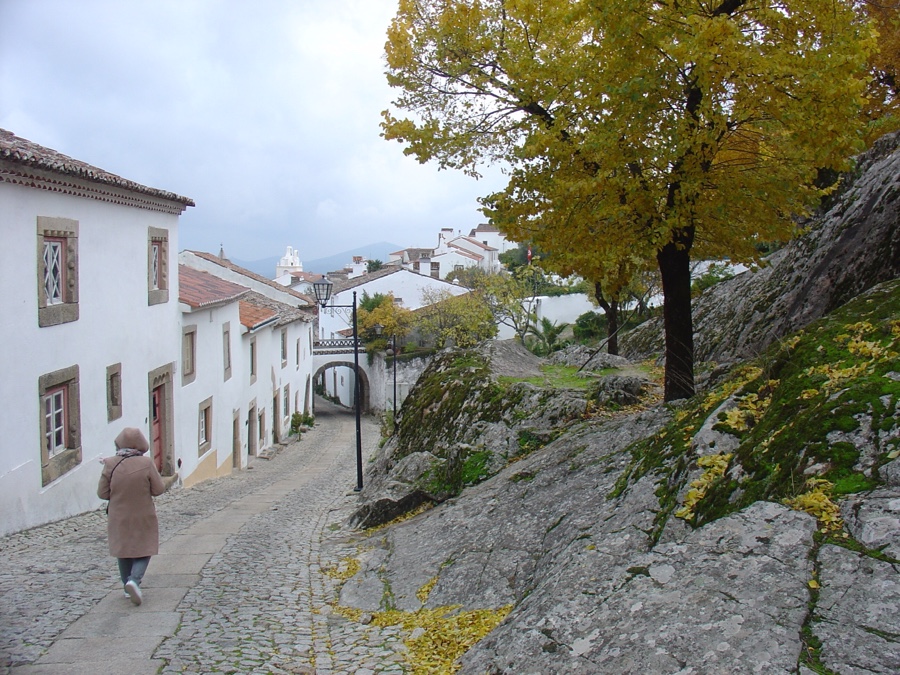 Ultrapassada esta porta muralhada, logo nos surge uma ruinha a subir. Rua estreita mas longa, calçada antiga, casas brancas de um lado e do outro de dois pisos (tradicionalmente o primeiro para oficina ou guardar animais e o segundo residencial). O típico de Marvão que nos há-de acompanhar por toda a jornada.