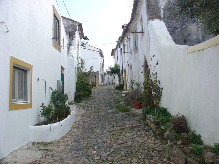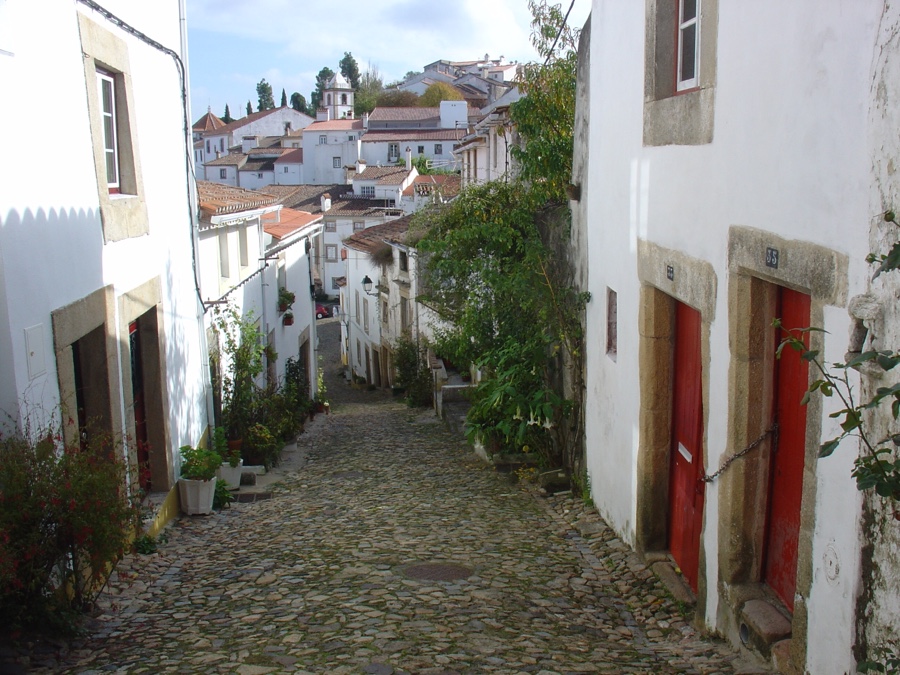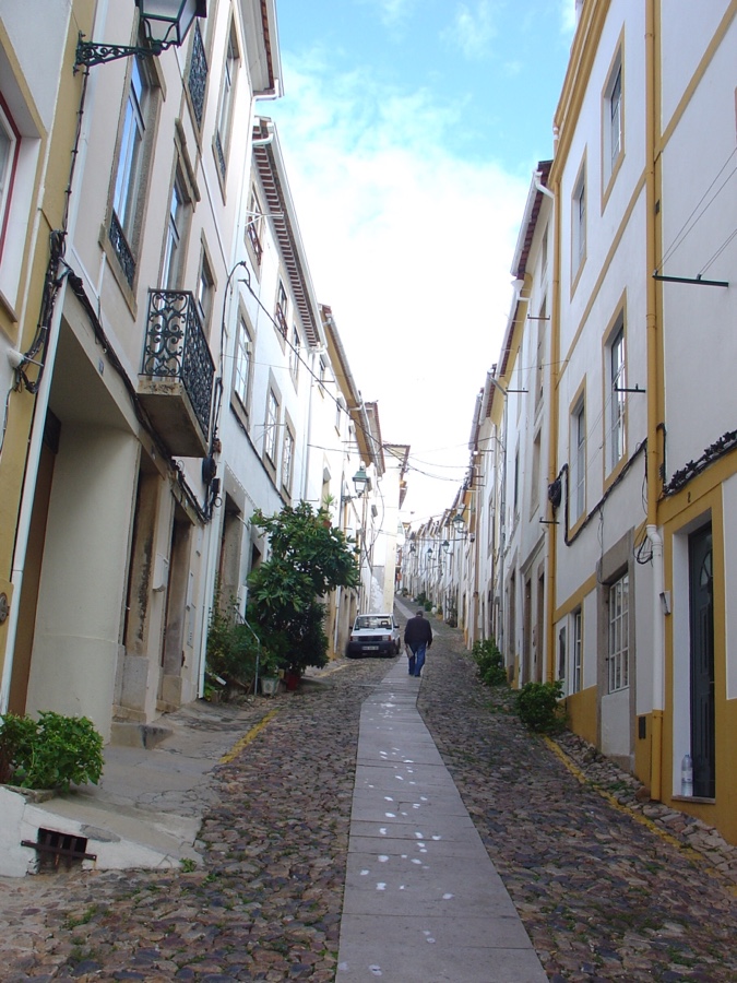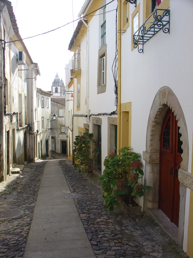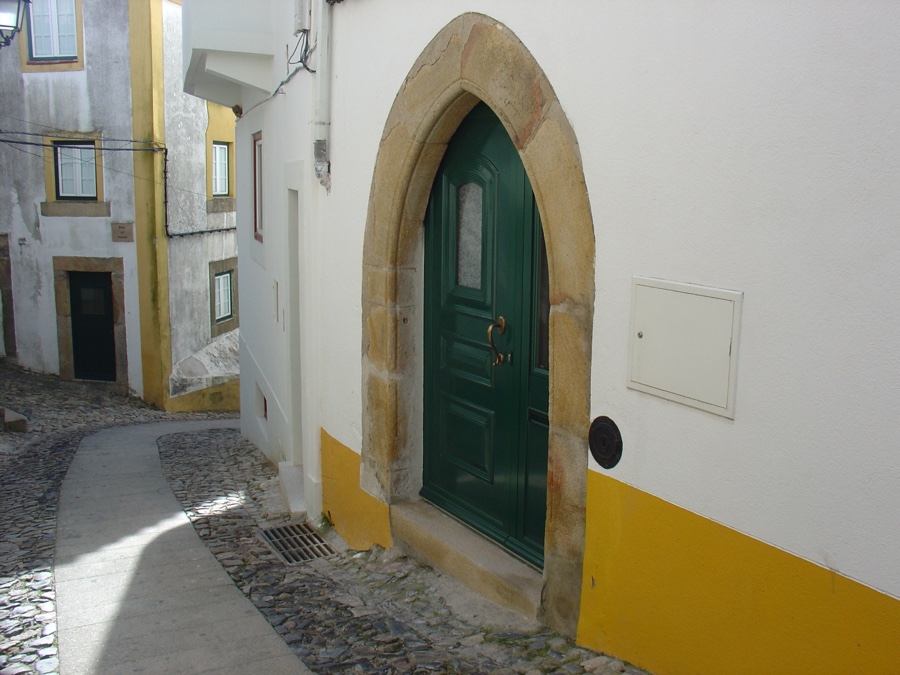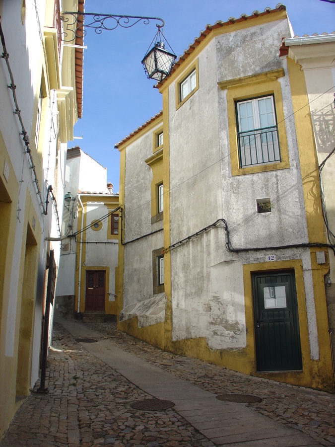 Antes, porém, subamos até ao castelo. Pelas tais ruas estreitas e íngremes. Sempre preenchidas com o casario branco com frisos amarelos, tão típico dos povoados alentejanos. Mas aqui as ruas de traçado medieval estão todas floridas. E as portas ogivais e manuelinas sucedem-se sem que nos cansemos de as observar.