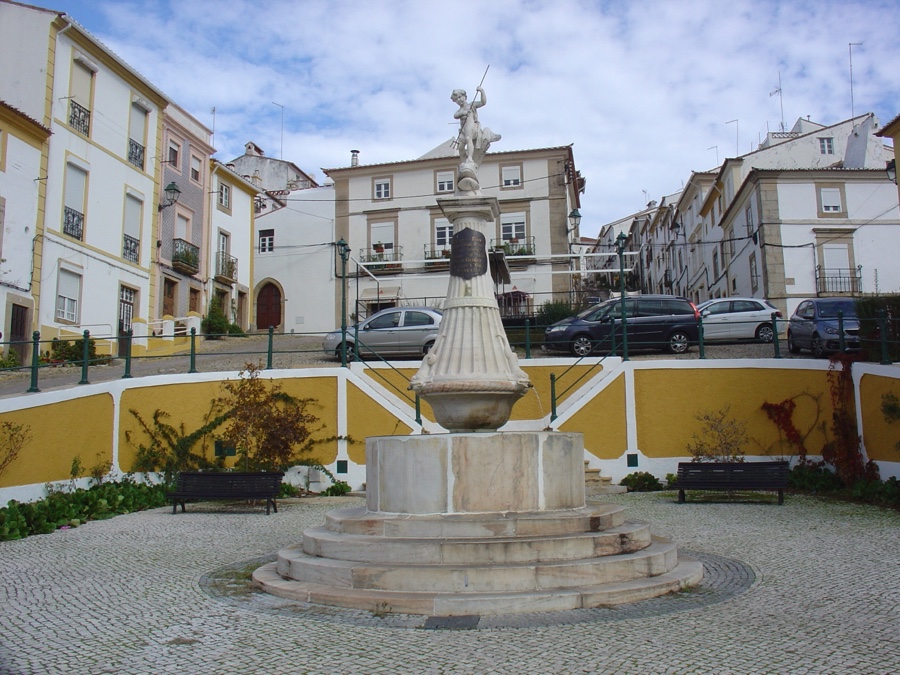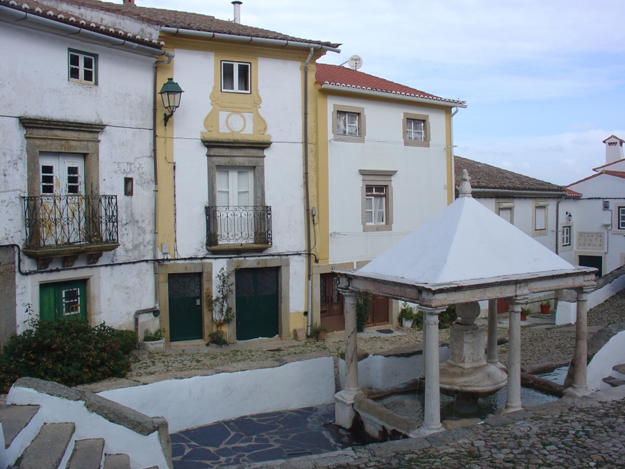 Saídos da sinagoga descemos a bem descer até à Fonte da Vila, construção do século XVI em forma quadrangular e com uma cobertura piramidal suportada por colunas de mármore. Despedindo-nos desta fonte singular, subimos mais uma rua e já cá estamos novamente diante dos antigos Paços do Concelho. Diversas ruas irradiam daqui para cima, até lugares que nos oferecem uma panorâmica irresistível do castelo e da Serra de São Mamede e mais além.