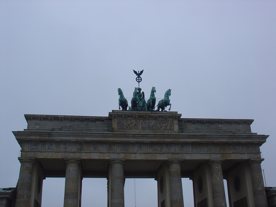 E o Tiergarten termina, ainda, na Porta de Brandemburgo, a estrutura construída entre 1788 e 1791 que tomou por modelo a Acropolis de Atenas, com as suas 6 colunas dóricas. Com a Quadriga no seu topo, a carruagem puxada por quatro cavalos guiada por Vitória, a deusa da vitória, o elemento decorativo mais vivo e conhecido da Porta e provavelmente de toda a Berlin. Ou seja, o Tiergarten é o centro da Berlim moderna e na sua fronteira ficam dois dos maiores símbolos da cidade, senão mesmo os maiores: o Reichstag e a Porta de Brandemburgo. A Porta é o mais importante símbolo da reunificação alemã e ponto de celebração ainda hoje, sejam comemorações de títulos mundiais de futebol, festas de fim de ano, paradas de todo o género, enfim, o lugar para se exprimir toda a alegria. Antes da reunificação em 1990 esta era como que uma zona de exclusão, perdida na divisão da cidade promovida pela política e pela ideologia e marcada no terreno pelo Muro. E aqui é onde tem início a ultra famosa avenida Unter den Linden, outrora em território da Berlim Leste.