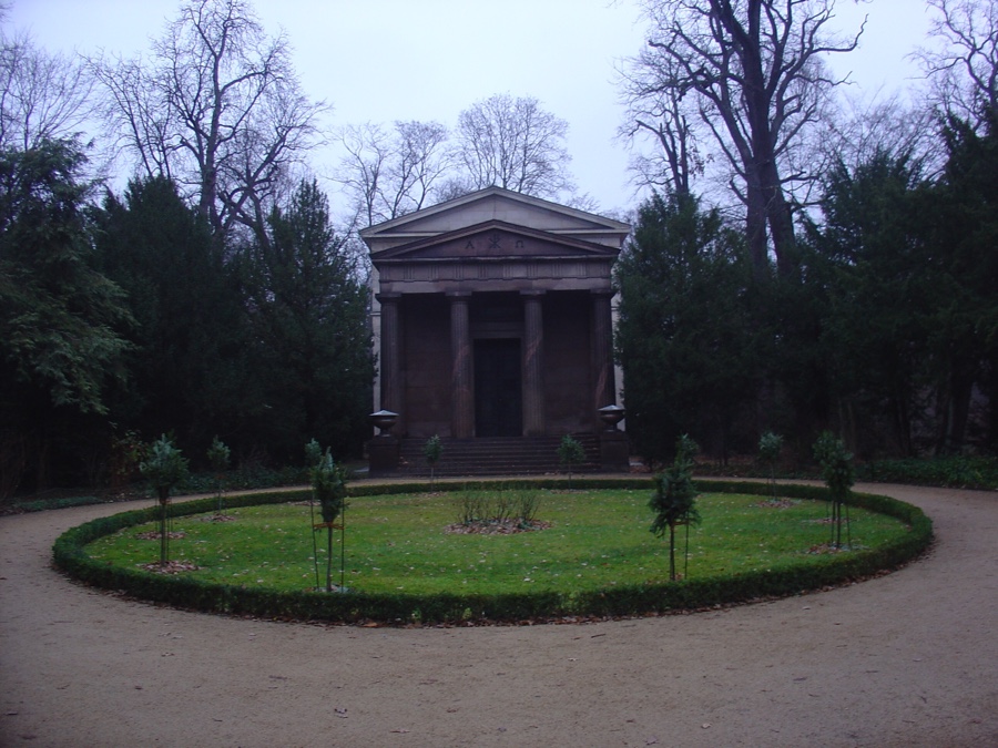 O mesmo vale para o interior do Mausoléu construído na outra ala do parque. Este edifício surpreendente em estilo neoclássico com colunas na sua fachada foi construído em 1810 com o propósito de acolher a Rainha Luise, mas entretanto acabou por se transformar como que no jazigo da família real. A sua implantação não é menos surpreendente, rodeada de um jardim alto que protege e garante o eterno descanso dos Hohenzollern.