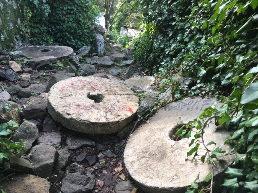 No vale da ribeira do Mourão, a Cascata de Anços passa totalmente despercebida a quem segue pela estrada vindo de Montelavar ou de Negrais. Há que cortar para a rua da Laranjeira, e é por isso que esta também gosta de ser conhecida como a Cascata da Laranjeira. Mais, exige ser conhecida por esse nome, assim mo afirmou o guarda-cascatas local. Por sorte o Tóino dos Bigodes serviu-me de guia para adentrar pela natureza deste pedaço precioso de propriedade particular que até há pouco tempo tinha o acesso totalmente vedado aos forasteiros. Hoje podemos percorrer o trilho pouco pisado mas fácil de identificar. Algumas ruínas de edifícios esquecidos pelo tempo, incluindo mós dos moinhos, são testemunhos da presença do Homem por aqui. Mas é a natureza a grande dominadora do lugar.