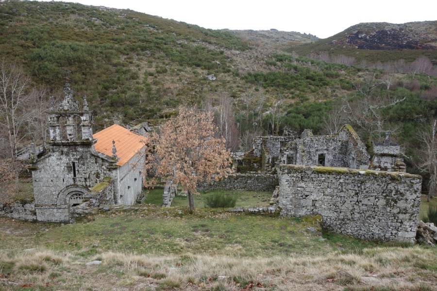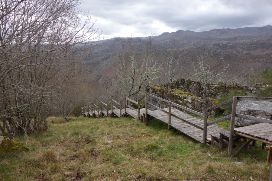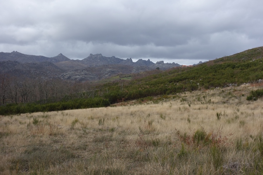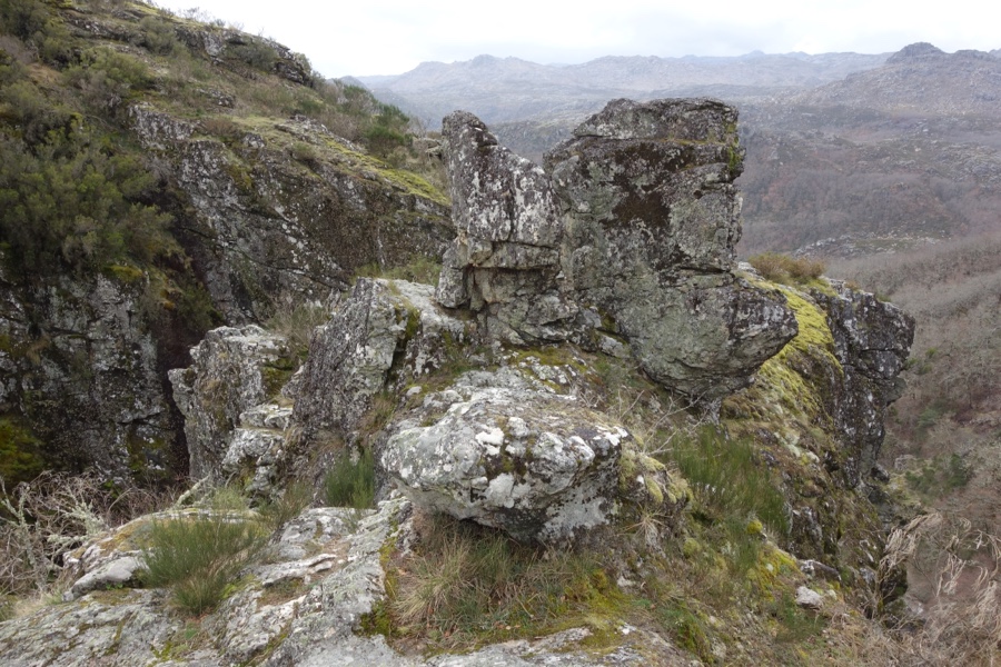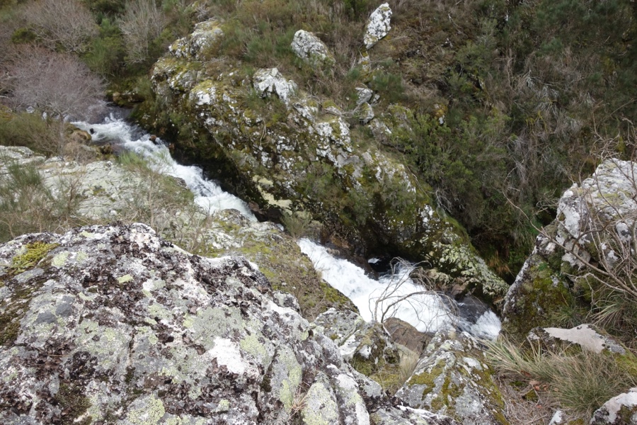 Deste Mosteiro, subindo um pouco a encosta, saí um trilho que nos leva à Cascata de Pitões das Júnias. Mato rasteiro e blocos de granito é o que pisamos no caminho. Diz que por aqui, entre fauna diversa, podemos encontrar cobras de dois metros, mas inofensivas. Felizmente não o pude confirmar. A silhueta das fragas ao fundo tomou toda a minha atenção.