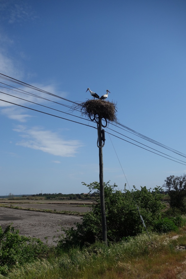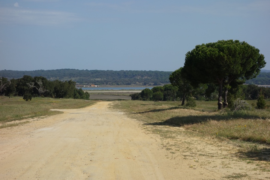 Referi que são quase 30 os quilómetros de estrada sem curvas que ligam Alcácer do Sal à Carrasqueira, mas está visto que apesar da liberdade de se carregar no acelerador a viagem não é breve. Os convites para paragens são muitos, seja o simples cheirar o ambiente de pinhal ou apreciar os ninhos das cegonhas no cimo dos postes de electricidade, confirmar as cores do casario alentejano em lugares como Montevil ou espreitar uma das muitas herdades turísticas como Montalvo – até onde as cancelas das propriedades privadas o permitem. A região da Comporta não é um lugar que se deixa descobrir facilmente, há que insistir e não hesitar em ir mais além sempre que o podemos. Por vezes parece que as estradas de terra batida não vão dar a lado nenhum, mas a verdade é que levam sempre, pelo menos, ao recato, à tranquilidade e, com sorte, a um pedaço de Sado ou de Atlântico.