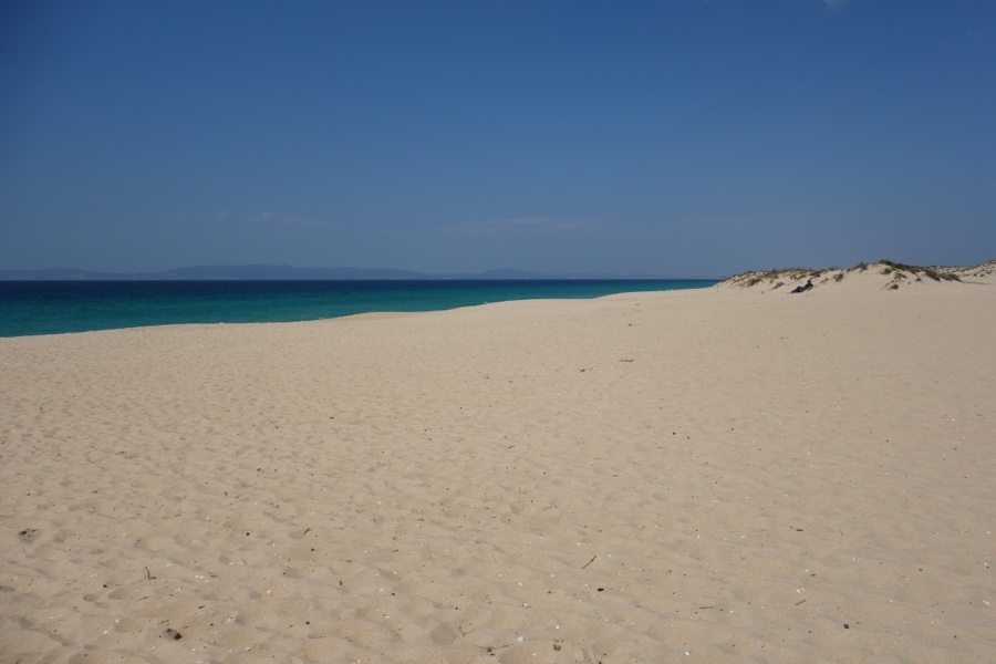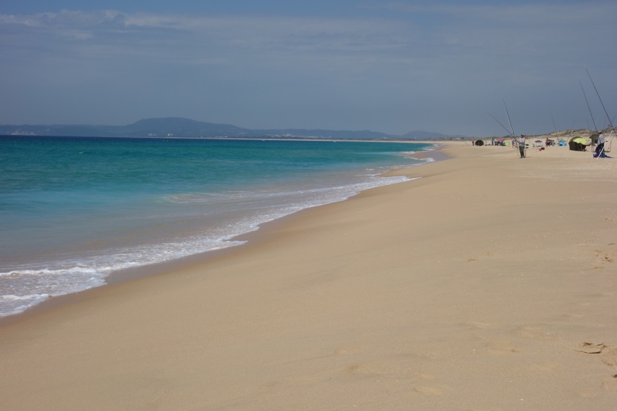 A praia oficial que se segue é a do Carvalhal, a cerca de 11 quilómetros de distância da praia da Comporta. Entre estas, lá está, o extenso areal da costa ocidental é apenas acessível por alguma propriedade privada com acesso ao mar ou percorrendo o areal junto a esse mar de lés a lés, a pé ou até a cavalo. Mais, os arrozais servem também como que de barreira natural entre o pinhal (e a estrada) e o mar.