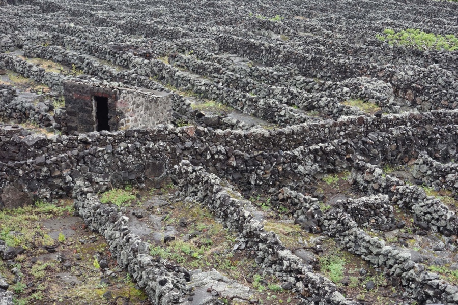 É surpreendente poder ver e perceber que a vinha pode ser plantada – e daí surgir bom vinho, sendo o verdelho o mais famoso da ilha – na lava tornada pedra na mais recente das ilha do arquipélago dos Açores. A pedra, que curiosamente não vemos na vizinha Faial, está por toda a ilha do Pico, mas é na costa entre o Lajido de Santa Luzia e a Candelária, ou seja, grande parte da costa noroeste e oeste, que se torna mais evidente a sua distribuição pelos infinitos muros. São tantos, mas tantos, estes muros que, diz-se, colocadas todas as suas pedras em fila, umas atrás das outras, dariam uma vez e meia a volta ao mundo, o que levou João de Melo, o escritor açoriano de Gente Feliz com Lágrimas, a falar numa “epopeia de pedra”.