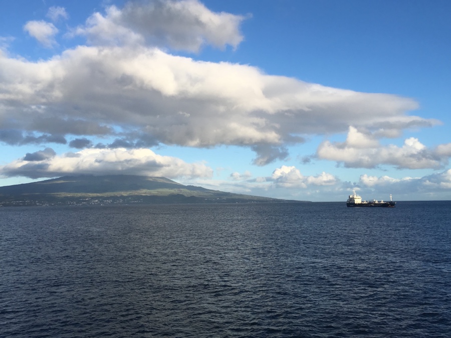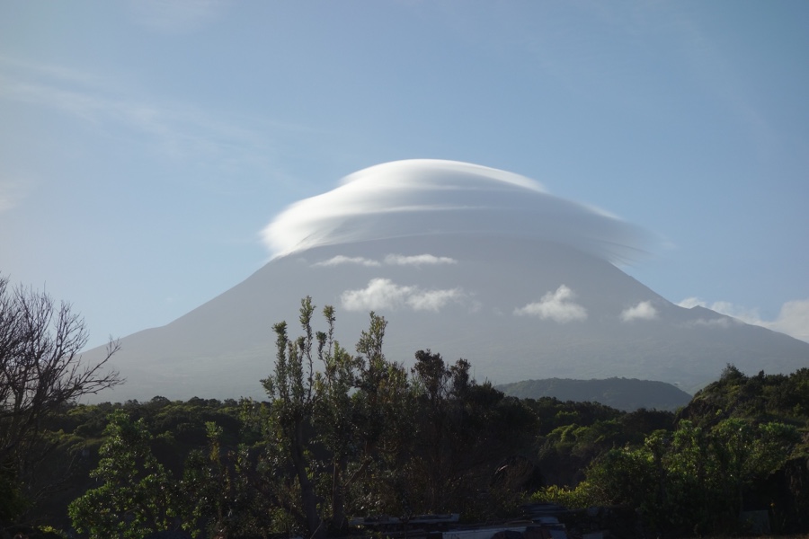 Tive a sorte de a ver inteira da vizinha ilha do Faial, com o Piquinho nevado à espreita. Quando cruzei o Canal rumo à ilha do Pico ainda a vi a caminhar para o céu acompanhada da sua fiel e imensa nuvem. Depois disso, nunca mais a encontrei. Mais, duvidei mesmo que ela por ali andasse.
