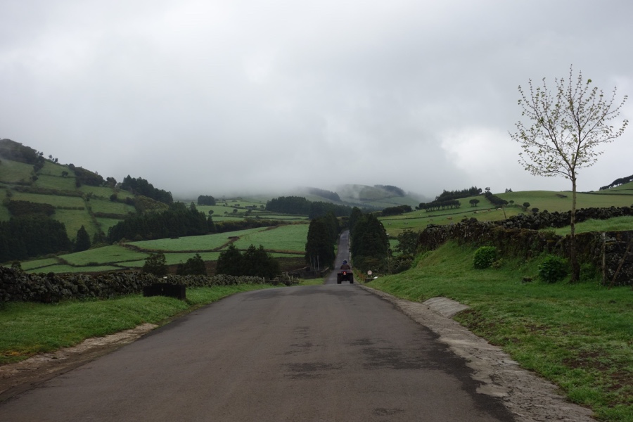 Infelizmente, o costumeiro nevoeiro não me permitiu explorar esta zona da ilha. Nem a Ponta dos Rosais. Se já tinha visto a minha estadia na ilha de São Jorge ficar reduzida para metade, para pouco mais de 24 horas, por conta do mau tempo no canal, o seu próprio nevoeiro ainda me vedou a possibilidade de passear livremente à volta dos seus verdes cones vulcânicos. Com estas borbulhas rugosas, voando de São Jorge para a Terceira pude, por entre algumas nuvens, perceber o porquê da ilha se assemelhar na verdade a um dragão.