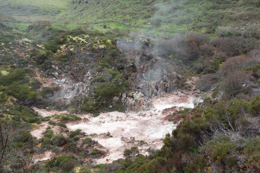 Através de um percurso pedonal instituído somos transportados por mais uma paisagem irreal. Um sistema de fissura vulcânica leva a que uns gases – as fumarolas – sejam libertados para a superfície. A cor amarelo-alaranjada que se vê no meio da vegetação corresponde a depósitos de enxofre, sendo ainda, fenómeno mais raro, formados cristais de enxofre.