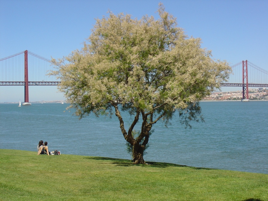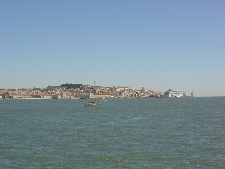 Vemos ao fundo o Panteão, com o já habitual barco de cruzeiro estacionado à sua porta, depois a Praça do Comércio, as torres das Amoreiras, o porto de Alcântara, a Ponte 25 de Abril e a Torre de Belém debaixo das suas asas. Esta é uma vista soberba e não cansa olhar para Lisboa, exposta por inteiro e recostada só para nós.