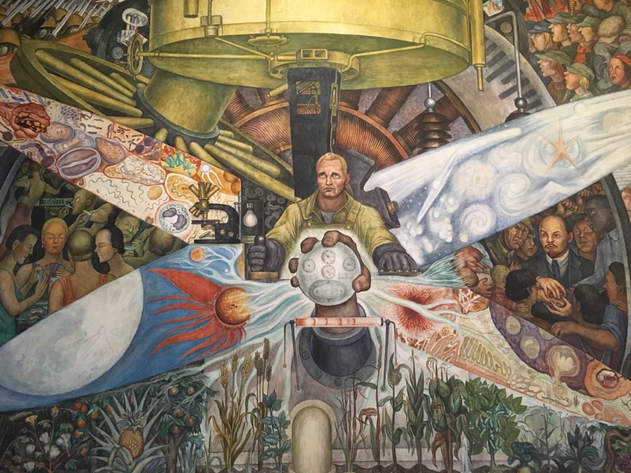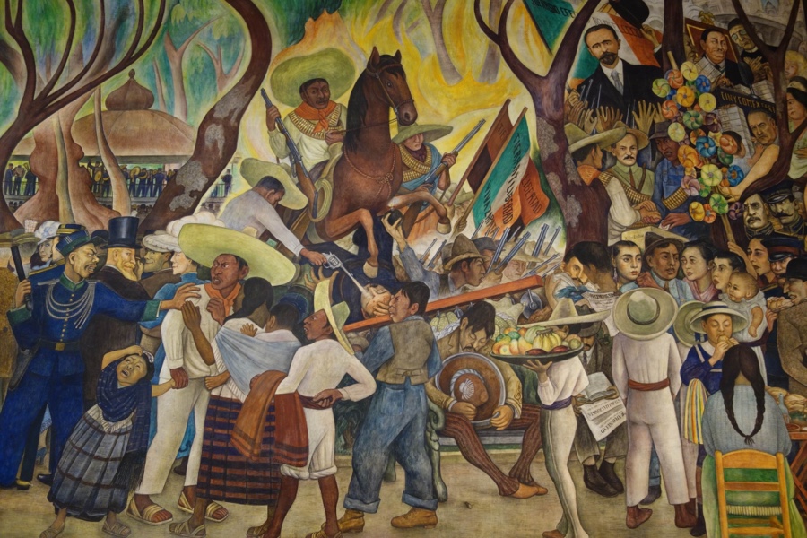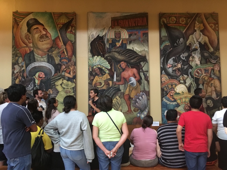 O muralismo mexicano teve origem por iniciativa de José Vasconcelos, enquanto reitor da Universidade Nacional e Secretário da Educação Pública. José Vasconcelos (cuja Biblioteca do México, no complexo da Ciudadela, instalada numa antiga fábrica de tabaco do século XVIII, leva o seu nome e possuiu belíssimas salas com espólio de grandes autores mexicanos), defendia que as artes visuais eram parte substancial da revolução cultural e educativa de que a população necessitava para ampliar a sua percepção do mundo. Daí o motivo pelo qual os murais deveriam estar à vista de todos nos edifícios públicos. E, já agora, expressar uma visão comprometida com a cultura e identidade do povo mexicano. Diego Rivera, um dos três grandes muralistas mexicanos, ao lado de David Alfaro Siqueiros e José Clemente Orozco, levou este comprometimento quase aos limites, e a sua ideologia marxista é visível em muitos murais. De tal forma que uma encomenda para o Rockefeller Center, em Nova York, acabou por ficar inacabada por ter sido recusada pela sua crítica directa ao capitalismo e endeusamento do socialismo. Parte deste mural foi mais tarde recriado e está hoje no Palácio das Belas Artes da Cidade do México.