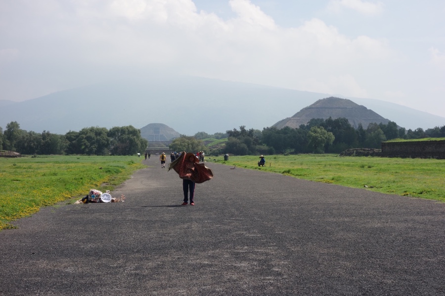Um pouco de história. A civilização que hoje conhecemos como Teotihuacan foi a maior do seu tempo na Mesoamérica e, crê-se, até o maior império que reinou em terras que hoje conhecemos como do México antes da chegada dos espanhóis. Terá surgido no século I, atingindo o apogeu entre os anos 450 e 650, até ao seu colapso no século VIII. Ou seja, Teotihuacan durou cerca de 900 anos. Após ser abandonada (não se sabe com certeza o porquê do seu abandono), continuou como espaço de peregrinação e os toltecas e os aztecas, que a sucederam no tempo largos séculos depois, ficaram impressionados com a sua grandeza e logo a consideraram sagrada, tendo reocupado algumas das suas áreas. O nome verdadeiro da antiga cidade é desconhecido, até porque se desconhece igualmente qual a língua que os seus habitantes originais falavam. O actual nome – Teotihuacan – é náhuatl e deve-se aos aztecas. O seu significado? Um poético “a cidade onde os homens se transformam em deuses”.