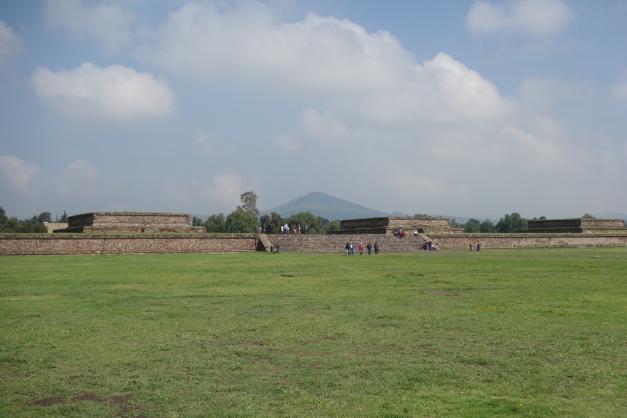 Teotihuacan, então. Esta é uma antiga cidade, anterior aos aztecas, diz-se que a primeira cidade planeada da Mesoamérica. E que cidade. Como não conhecia nada dela, nem sequer de fotografias, a surpresa e encantamento foram enormes. São pirâmides e mais pirâmides, algumas delas de dimensão desmedida mas sempre elegantes, num enquadramento paisagístico belíssimo, um manto raso verde rodeado de vegetação que cobre os formosos montes-vulcões característicos do México.