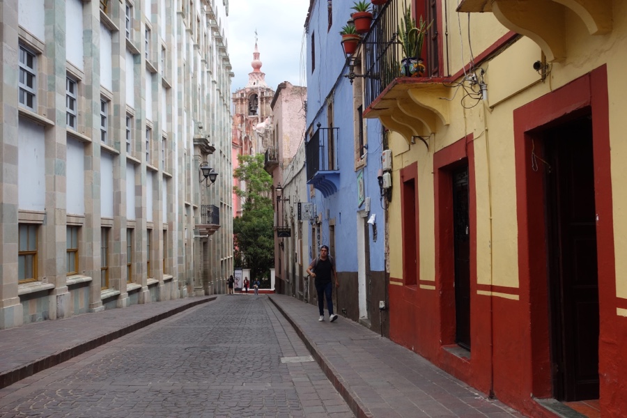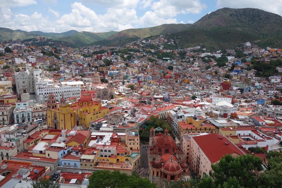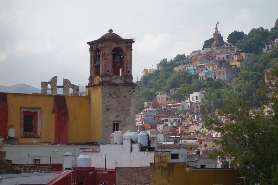 Se há lugares improváveis para se estabelecer uma cidade, o de Guanajuato é um deles. Encravado entre montes, os seus edifícios foram-se erguendo num vale. O que acontece é que o tempo fez com que as encostas desse vale fossem também sendo tomadas pela urbanização. Assim uma espécie de mini La Paz a metade da sua altitude.