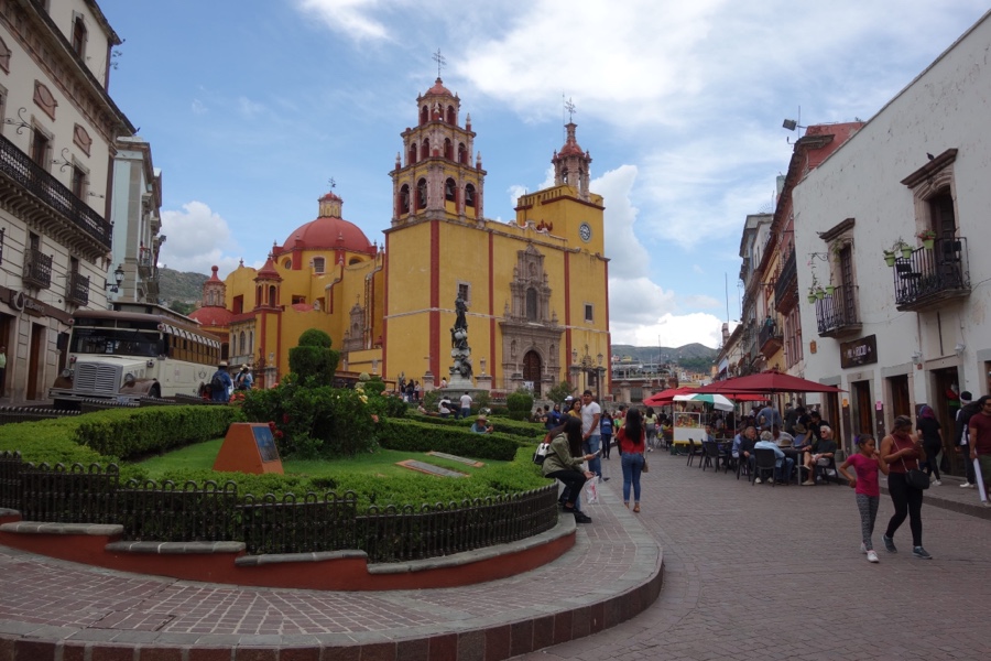 Junto ao Jardin de la Unión fica a Basílica Colegiata de Nossa Senhora de Guanajuato e a sua Plaza de la Paz, ideal para se descansar enquanto se aprecia uma paleta, os gelados de pauzinho com todos os sabores que já se imaginou.