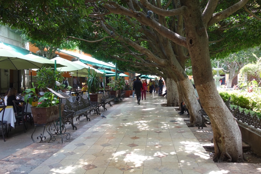 Comecemos pela do Jardín de la Unión: esta praça-jardim é muito peculiar e bonita. De planta triangular, está totalmente coberta por árvores figueira-asiática e rodeada de restaurantes e bares nas laterais e a igreja de San Diego no topo. São as copas das árvores que fazem com que o jardim tenha uma cobertura natural que a protege do sol e lhe dá um ambiente idílico, ainda para mais com a companhia de um coreto.