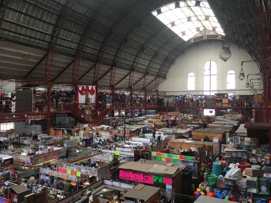 E com isto atravessamos quase a cidade de uma ponta à outra e chegamos até ao Mercado Hidalgo e à Alhondiga. O Mercado é imperdível, não tanto pela sua arquitectura em vidro encimada por uma torre do relógio – originalmente pensado para ser uma estação de comboio – nem pelas suas bancas de venda – quer de vegetais, frutas, carne e peixe, quer de artesanato -, mas porque aqui se pode almoçar alguns dos produtos típicos da região. Igualmente, no adjacente Mercado Gavira, também conhecido como “mercado da comida”, existe uma série de pequenos restaurantes que disputam furiosamente os clientes.