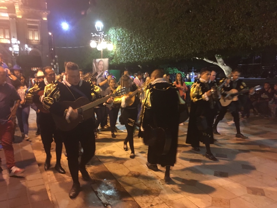 Outra das suas instituições são as “callejoneadas” ou “estudantinas”. Não são apenas os estudantes que saem pelas ruas a animar a cidade, também os músicos profissionais têm um papel principal neste ambiente de festa. No fim da tarde, princípio da noite, grupos de músicos ou entertainers com vestes típicas convidam quem se queira juntar (muitas das vezes vendem um “bilhete” que servirá para oferecer uma bebida) para daí seguirem pelas ruas da cidade a contar histórias e a cantar. É pura animação e é difícil resistir. Ainda para mais, por essas horas no Jardín de la Unión estão lá também os mariachis para dar música a quem a queira ouvir – e somos muitos.