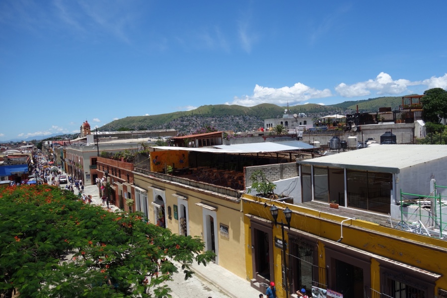 A diversidade do estado de Oaxaca manifesta-se na sua cultura, com uma série de etnias, mas também na sua geografia. Chegando de avião percebemos melhor os seus vales cercados de montanhas verdes. Mas mesmo caminhando pela cidade vemos que as montanhas nos rodeiam. Quando pretendemos sair dela por carro, então, nem se fala. Ou seja, Oaxaca está implantada num desses vales.