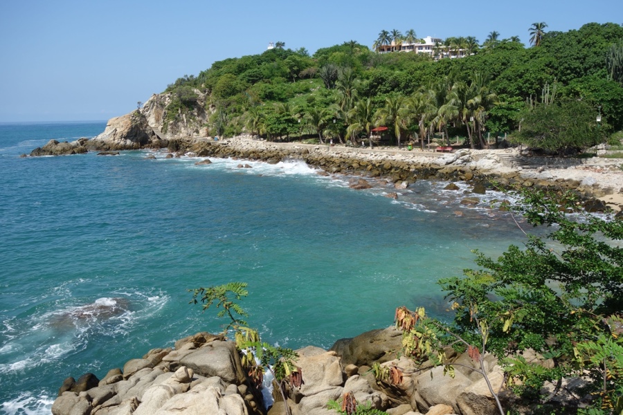 Mas utilizando os táxis sempre baratos chegamos até uma pequena enseada protegida pelas rochas que acolhe a Playa Manzanillo e Puerto Angelito.