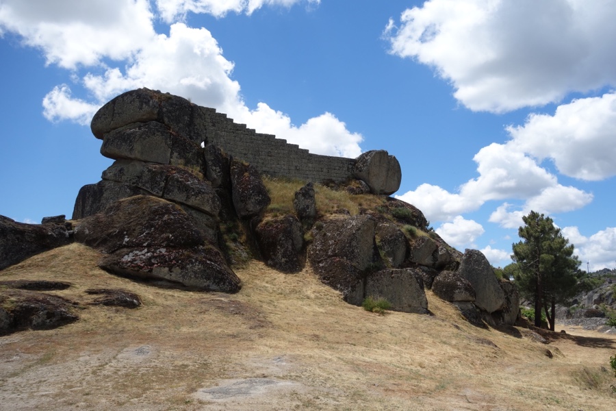 Moreira de Rei, no concelho de Trancoso, é uma aldeia pequenina aberta a um vale a perder de vista com a silhueta de uns montes ao fundo. Diz que do alto do seu castelo, à noite, se distinguem as luzinhas de 52 povoados, um por cada semana do ano. O castelo de Moreira de Rei tem raízes longínquas, pelo menos desde o século X. Seria então uma estrutura defensiva rudimentar, mais de acompanhamento a uma povoação rural do que de salvaguarda militar. O actual castelo datará do tempo de D. Afonso Henriques e está hoje em ruína. Acontece que essa ruína é fantástica. São rochedos e mais rochedos, todos formosos, que se percebe ainda dar corpo a esta fortificação. É um aproveitamento certeiro dos recursos naturais em todos os aspectos, quer construtivos quer paisagísticos. A muralha resiste a espaços e não há torres, mas ainda assim é uma felicidade deambular pelo curto espaço interior deste castelo.