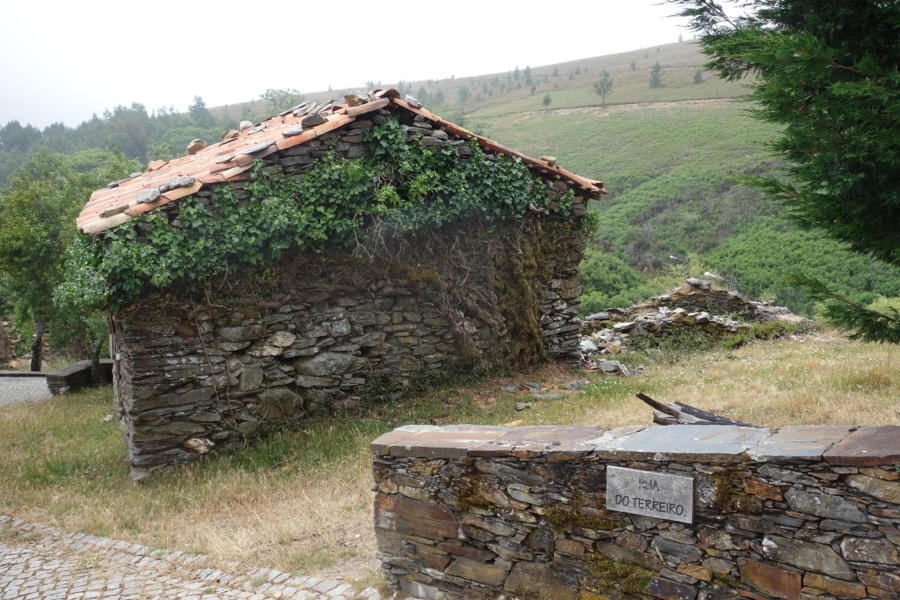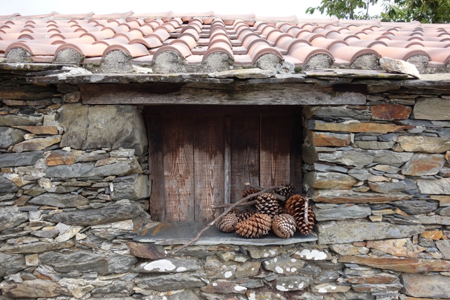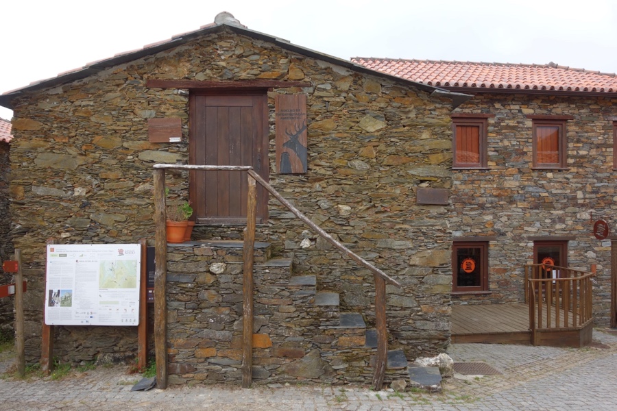 Aigra Nova, então. Aqui recebem-nos uns cães enormes, daqueles que metem respeito. Depois de hesitar em sair do carro constata-se que estes pachorrentos animais não estão ali para guardar o Núcleo de Interpretação Ambiental e a Loja de Xisto da aldeia, antes optam por se deixar estar na modorra a que a natureza local convida. Esta Aigra tem três ruas estreitas onde se duvida que o carro passe. Mas passa, depois de por elas termos caminhado um pouco.