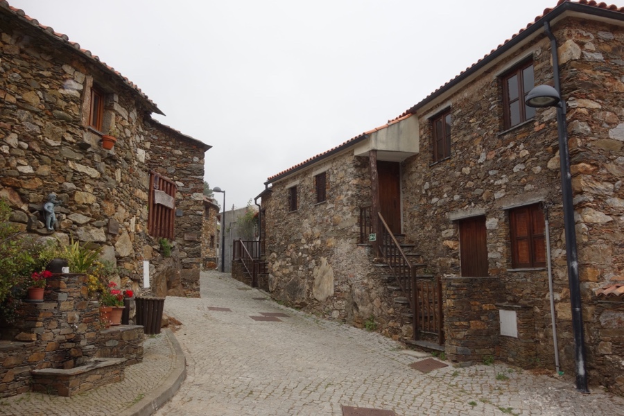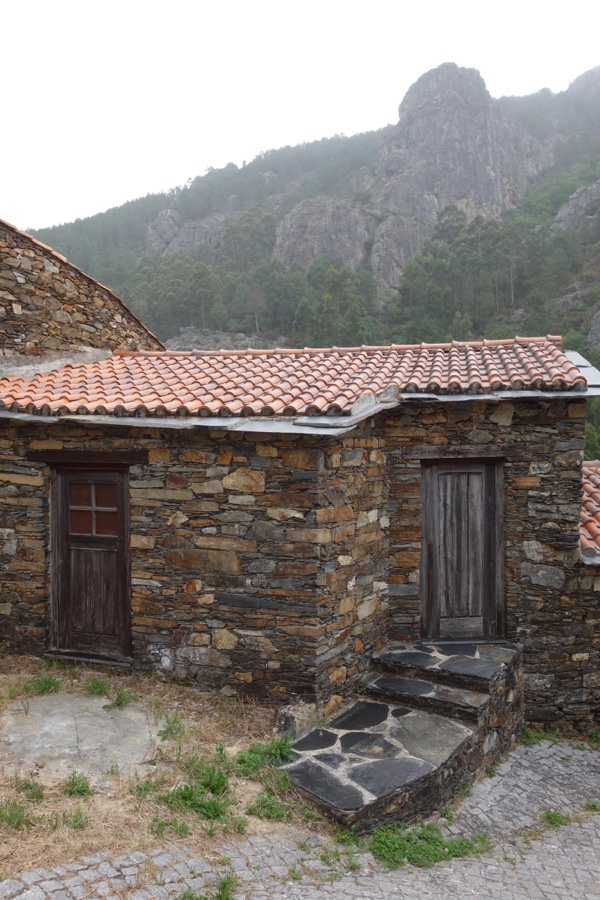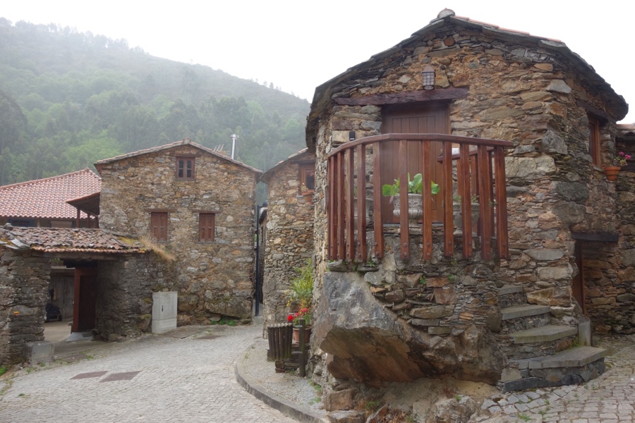 A sua implantação geográfica é desafiante, ao longo de um promontório, sempre a subir, e quase que as casas se equilibram umas nas outras. Ainda ao longe vemos que estas casas não são todas de xisto, mas quando entramos na aldeia, pouco após passar a ponte sobre a Ribeira e o castanheiro secular que nos dá as boas-vindas, vemos que é o xisto que nos rodeia. Caminhando pelas ruas estreitas apreciamos as casinhas de xisto com portas, paredes e parapeitos de madeira e observamos uns pormenores deliciosos nas fachadas. A maior parte das casas tem dois andares e tradicionalmente no rés-do-chão guardava-se o gado. Ao segundo piso acede-se por uma escada exterior também em xisto.