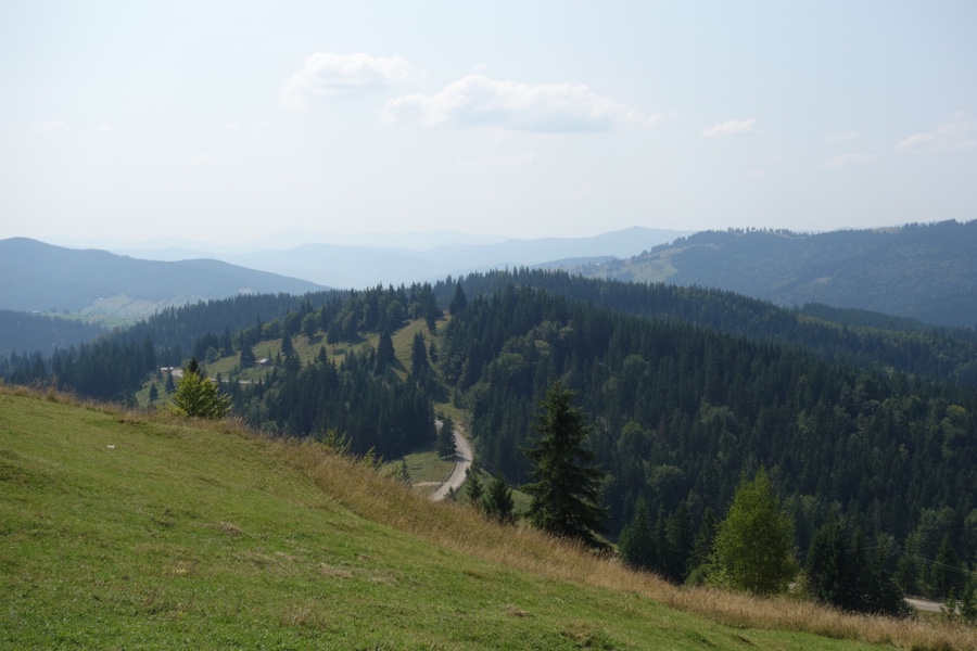Entre o Mosteiro de Moldovita e o de Sucevita passamos pelo Passo de Ciumarna. O tour por mim escolhido foi fantástico, com informação e simpatia preciosas por parte do guia, com muito tempo para a visita a cada mosteiro, mas com poucas paragens para se poder admirar a paisagem e, logo, para fotografias. A excepção foi este Passo, a 1109 metros de altitude, lugar de uma icónica escultura de uma mão gigante e onde estão montadas umas bancas de comida e souvenirs, para além de um parque aventura com uma zip line. Não perdi nem um segundo com estas atracções, ávida de olhar só para este pedaço das montanhas dos Cárpatos.