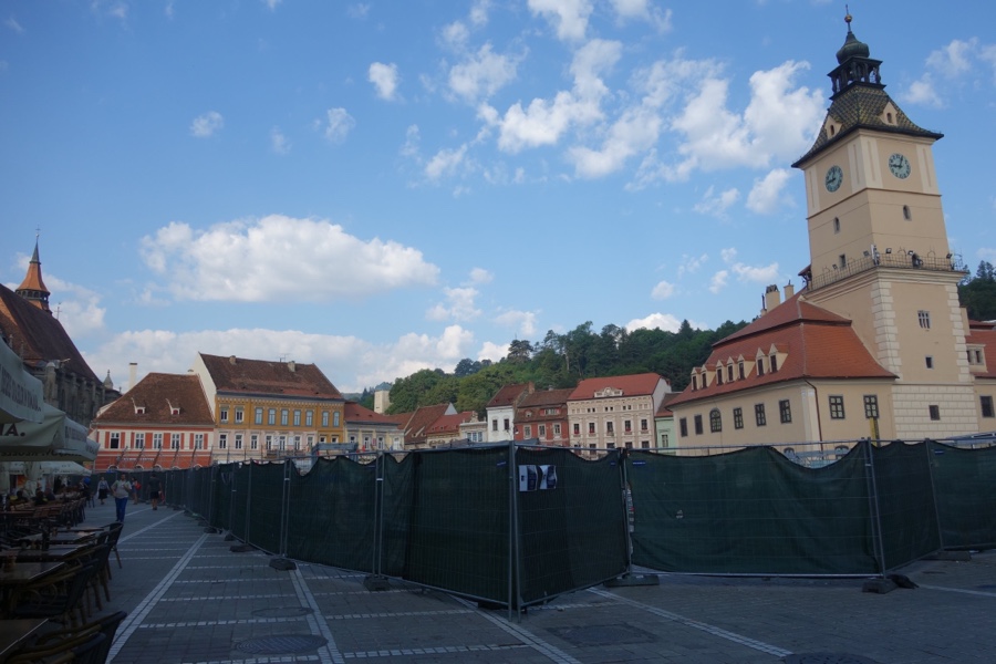 A Praça da Câmara deve ser bonita. E digo deve porque à minha visita estava vedada – o acesso e a vista – para preparação de algum evento. Este é um daqueles factos que me impedirá de ter Brasov para sempre como cidade preferida na Roménia, sentindo que não a conheci na sua plenitude. Mas, enfim, está sempre a acontecer chegar a um lugar e vê-lo entaipado para restauro ou para qualquer outra actividade, restando-nos a expectativa de que um dia voltaremos para completar o serviço.