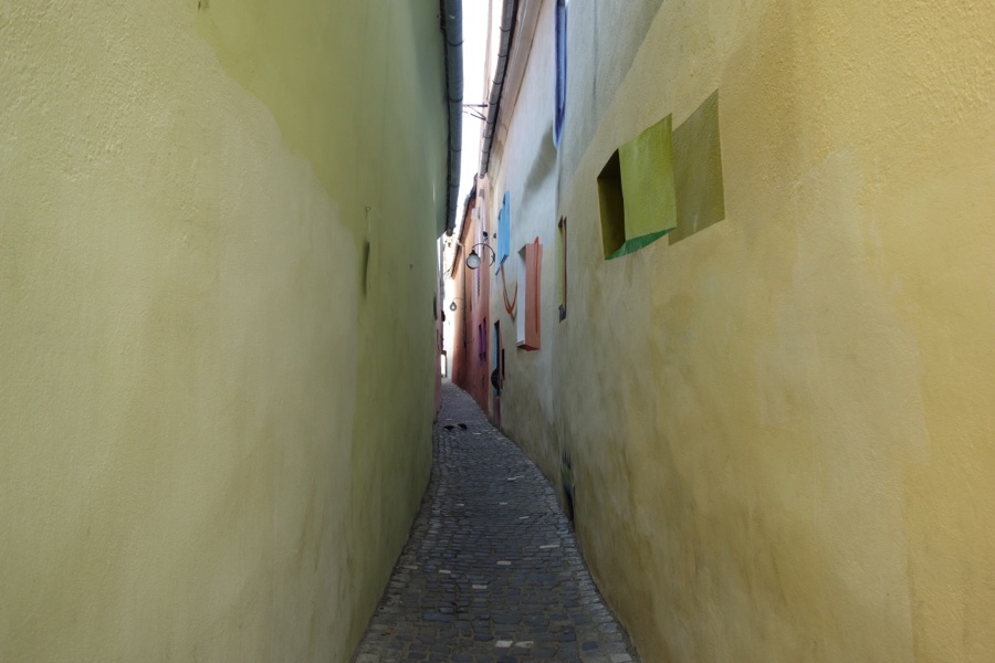 Já a Porta Schei foi construída em 1827 em estilo neoclássico e era a única que os habitantes do bairro de mesmo nome estavam autorizados a usar para entrar no centro histórico. Era no bairro Schei que viviam os romenos, proibidos pelos saxões de terem propriedades no interior da cidadela, e para a ela acederem não só tinham horários definidos como tinham de pagar portagem. Agora os tempos são outros e podemos livremente caminhar por qualquer rua de Brasov. Incluindo por aquela que é conhecida como uma das ruas mais estreitas da Europa, a Strada Sforii, com uma largura entre 1,1 e 1,3 metros. Originalmente uma passagem entre ruas para os bombeiros, hoje foi transformada num lugar onde os artistas de rua intervêm na pintura das janelas nas fachadas dos edifícios que a sustentam e onde o visitante comum pode deixar o seu apontamento.