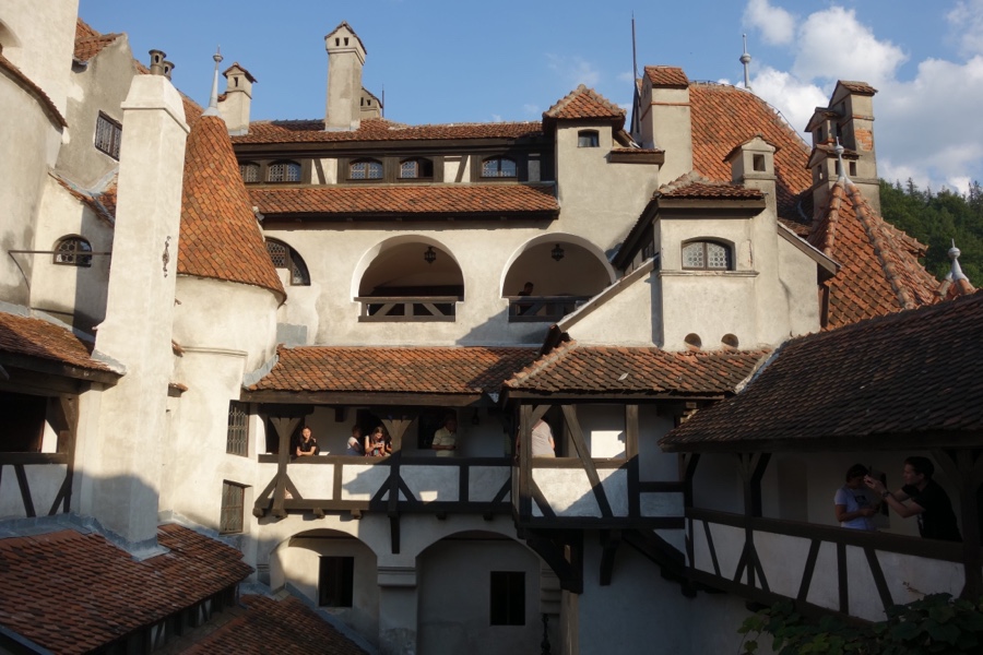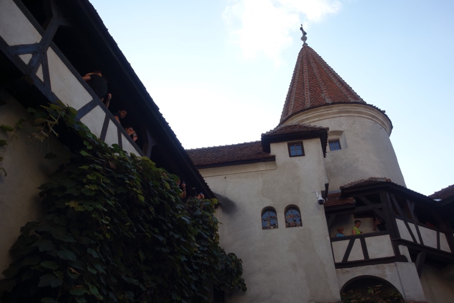 Realce para as suas torres e telhado vermelho, caindo em vários níveis e direcções, resultando num efeito visual delicioso, pormenores acrescentados já no século XIX. Em estilo gótico, o seu interior teria piada de ser percorrido – não fosse a companhia de magotes. São inúmeras salas pequeninas com chão de madeira, zigzagueando de forma aleatória, ideais para nos perdermos, todas elas decoradas com o mobiliário da família real. E, depois, quando alcançamos uma janela e a vista fica desimpedida, reconciliamo-nos com a história, o folclore e a realidade e agradecemos por, ainda assim, termos vindo até ao “Castelo do Drácula” e podermos admirar aquelas montanhas.