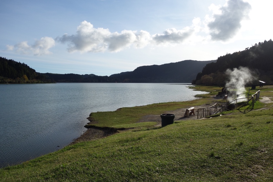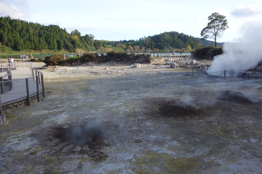 Enorme e acompanhada por uma densa vegetação, a Lagoa das Furnas é um belo parque para se caminhar a contemplar a beleza de mais um elemento originado pela cortesia dos vulcões. Mas aqui, como em nenhuma outra lagoa da ilha, a actividade vulcânica marca uma presença incrível e até assustadora. Como escreveu Gaspar Frutuoso, é fenómeno natural mas parece sobrenatural. São as fumarolas – ou caldeiras – das Furnas, que exalam os seus gases deste o interior da terra, numa ebulição constante, deitando fumo acima da terra e deixando a cor amarelada do enxofre um pouco por todo o lado.