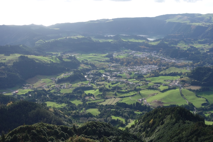 Vindos da costa norte, o miradouro do Salto do Cavalo é a introdução ideal à enorme paisagem do Vale das Furnas.