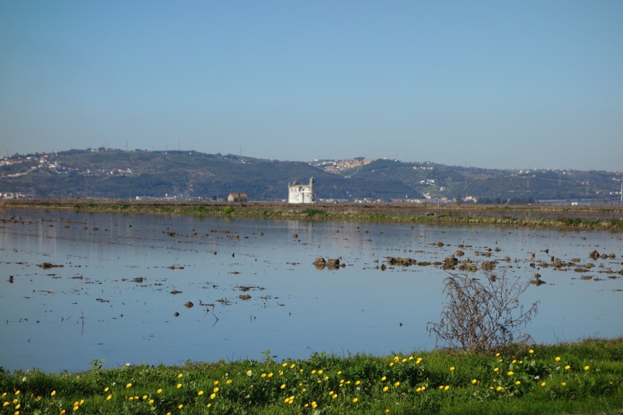 Para lá chegarmos seguimos por alguns quilómetros em estrada de terra batida na companhia de pastagens e arrozais. Sem perder de vista os equipamentos industriais que são a imagem de Alhandra, em terra firme numa das margens do Tejo, e a castiça igreja de Alcamé, em plena lezíria. Pura paisagem natural? Sim, mas a presença do Homem faz-se notar, e bem, num interessante convívio contrastante.