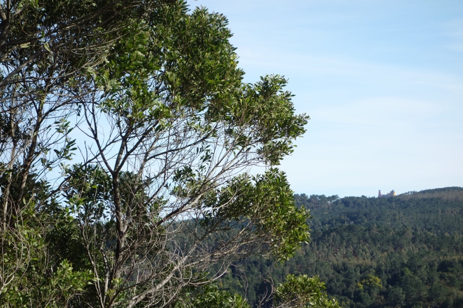 Até chegarmos ao estacionamento do Santuário da Peninha, onde tem início esta caminhada, seguimos de carro pela estrada totalmente protegidos pela vegetação carregada. Umas abertas, logo transformadas em miradouros, permitem-nos ir acostumando à paisagem que teremos lá de cima. Primeiro uma vista para as águas da albufeira do Rio da Mula e Palácio da Pena, depois uma vista para o Guincho e Cascais.