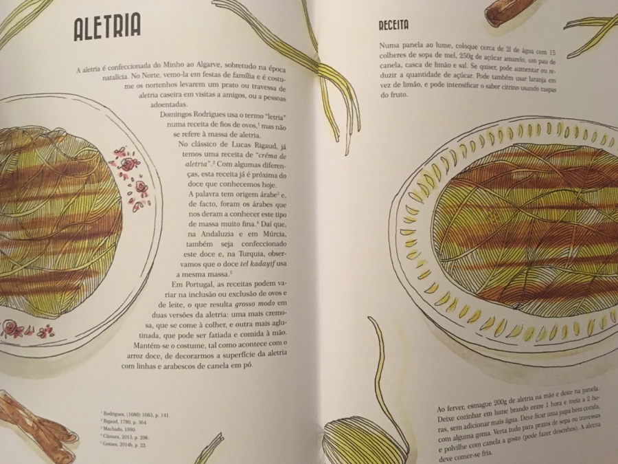 Estas três edições têm ilustrações da minha amiga Ana Gil que, nem de propósito, produziu uns belos desenhos da Aletria – da terra da minha avó materna – e das Cavacas – da terra da minha avó paterna. Rio Tinto e Aldeia das Dez não fazem de igual forma parte das minhas referências geográficas. Em Rio Tinto nunca estive, mas adoro a doçura da aletria legada pela avó Quina; a Aldeia das Dez volto sempre, mas evito a secura da cavaca feita pelas conterrâneas da avó Mariazinha. Antes prefiro o Pão de Ló desta última, de cuja preparação acompanhava atentamente à espera de rapar a gemada que restava na tigela. Ou os Pançudos. Ah, onde estão os Pançudos de Aldeia das Dez neste inventário? Aqui fica mais uma ideia de doce para uma futura edição.