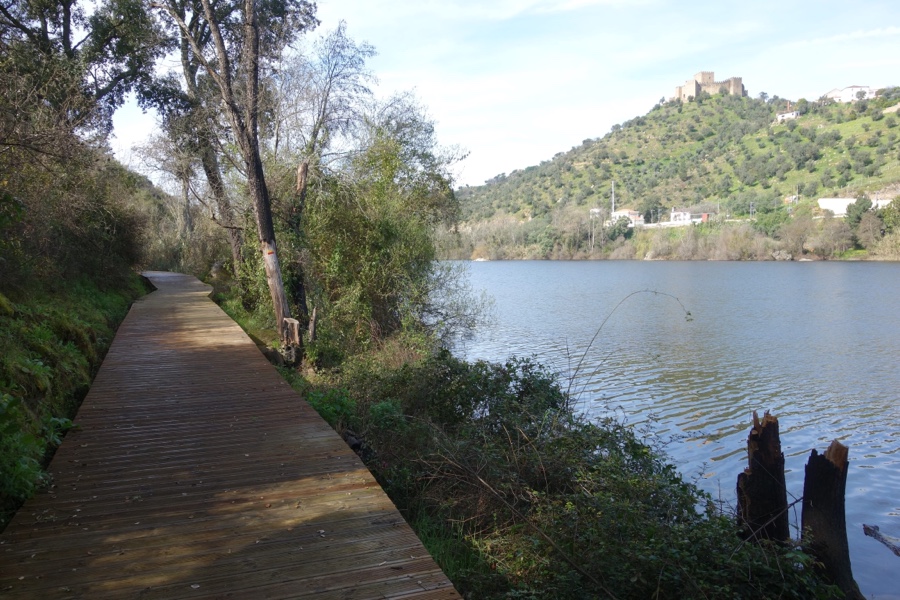Da praia fluvial, onde não falta sequer uma língua de areia branca, parte um percurso sobre passadiços de madeira de cerca de 1800 metros de comprimento, até à ponte de Belver, com o seu característico tabuleiro metálico verde. Este percurso, que a câmara pretende ver prolongado, é parte do PR1, “Arribas do Tejo”, mais longo, circular e com passagem por ambas as margens do rio. Mas nos passadiços caminhamos sempre pela margem esquerda do Tejo. E quase sempre com a companhia da imagem fabulosa do belo castelo de Belver na margem contrária.