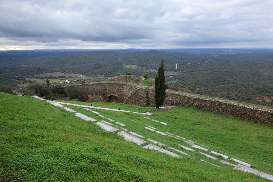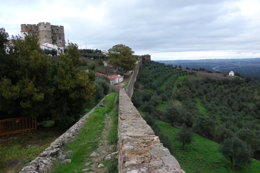 Desde logo, a planície a perder de vista. Esta é uma aldeia miradouro. Do alto dos 481 metros da garbosa colina tudo se avista, clima o permita. Mas mesmo em dia fechado, como nos tocou, o “pouco” que se vê é tanto que chega bem para nos convencer do privilégio.