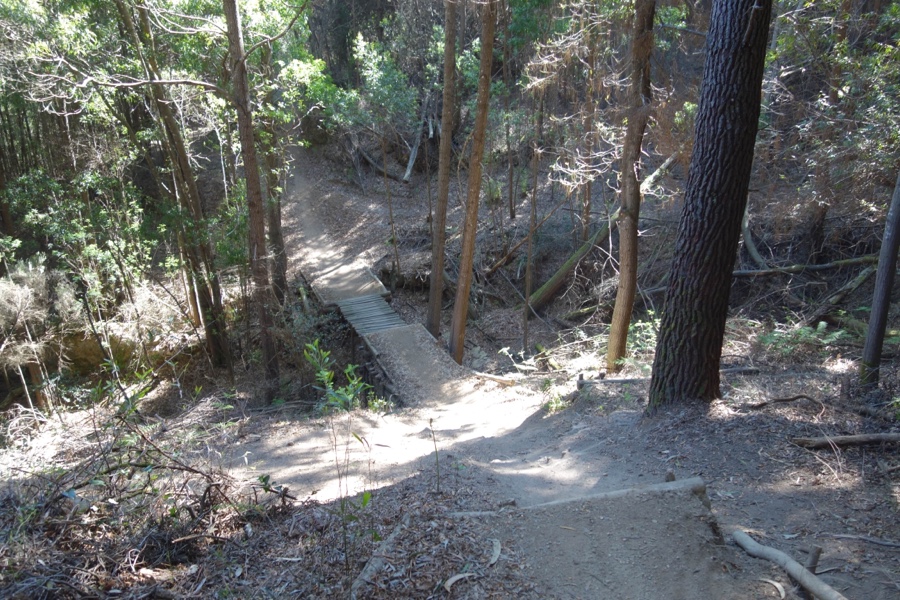 Só que muitas destas pontes até estarão aqui colocadas não para se atravessar algo, mas para tornar o trilho mais atraente e desafiante para o pessoal do BTT. Estes trilhos não são propriamente o lugar ideal para se caminhar confortavelmente apartado do mundo. Porque são difíceis de vencer a pé sem recurso à ajuda de bastões, por exemplo, e porque pode vir de lá lançada uma bicicleta a voar e aterrar mesmo em cima de nós. Mas enfim… fui lá parar não sei como, talvez por falta de sinalização ou por falta de atenção à sinalização, e por aí segui com sorte de não me cruzar assim com tantos radicais da bicla.