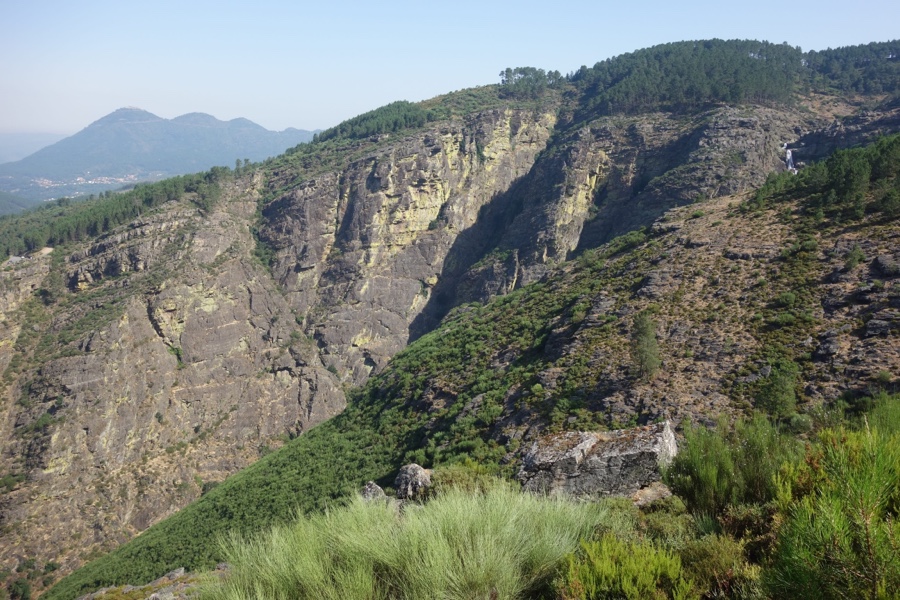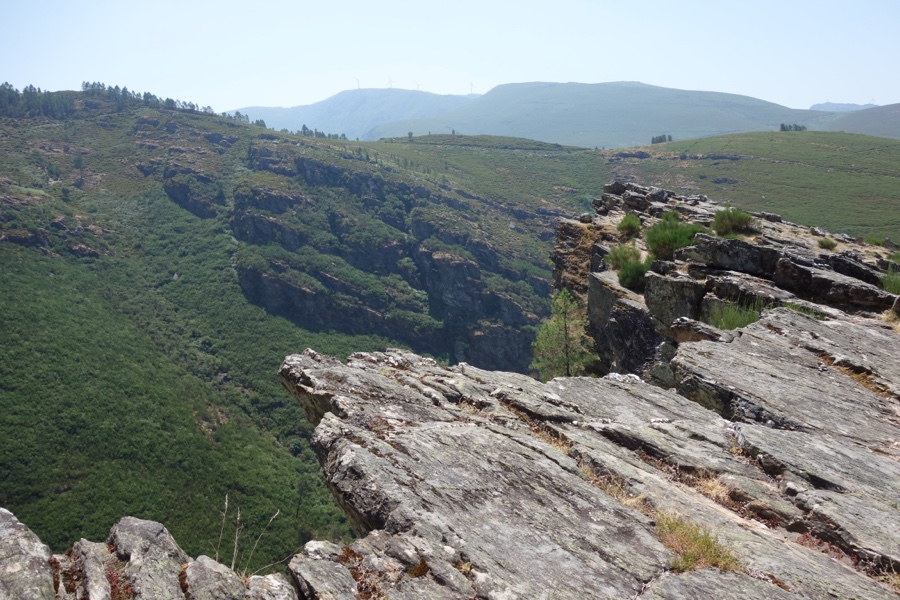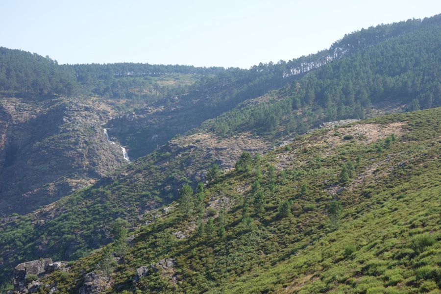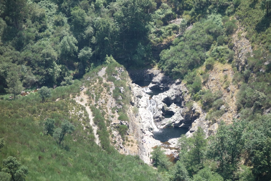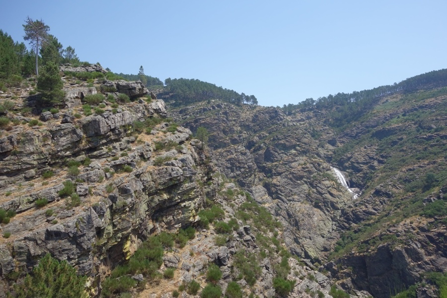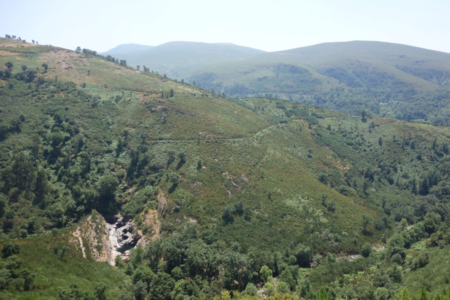 A partir daqui iniciamos uma longa subida a caminho das Fisgas e da aldeia de Varzigueto, primeiro protegidos pela vegetação, mas logo a céu aberto – daí que a caminhada em dias de maior calor possa ser ainda mais extenuante. Só que as vistas são absolutamente fantásticas, um emaranhado de serras e penhascos agrestes – um lugar de espanto e terror, como tão bem caracterizou Miguel Torga -, onde ao longe uma espuma branca pinta um desses penhascos, escorregando por ele abaixo. São, precisamente, as Fisgas. Os pretextos para pararmos e deixarmo-nos absorver pela magia do cenário são muitos, fazendo com que nem a subida nem o calor nos detenha.