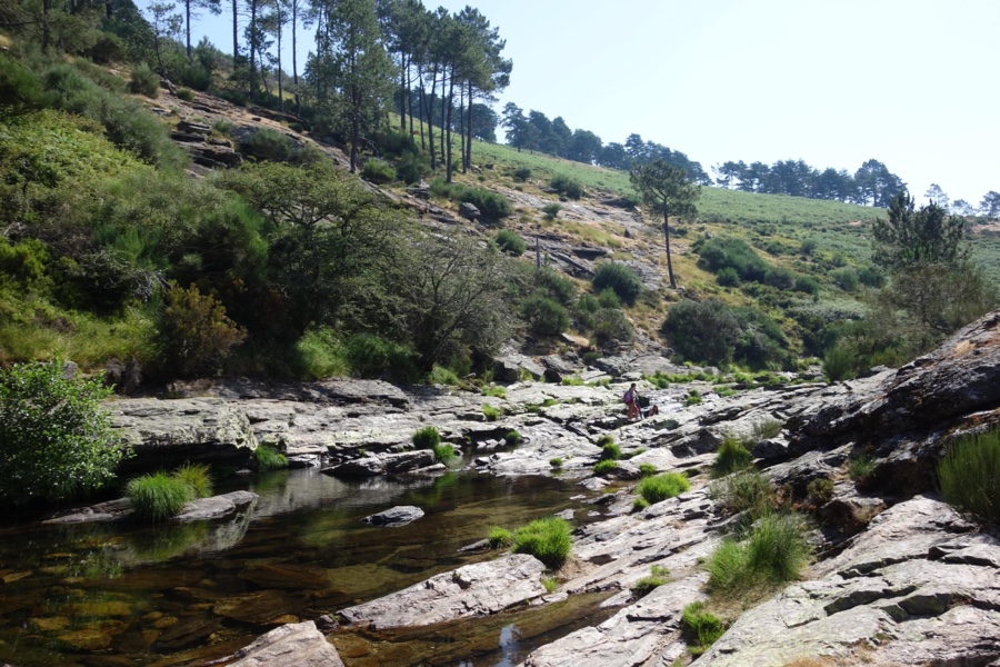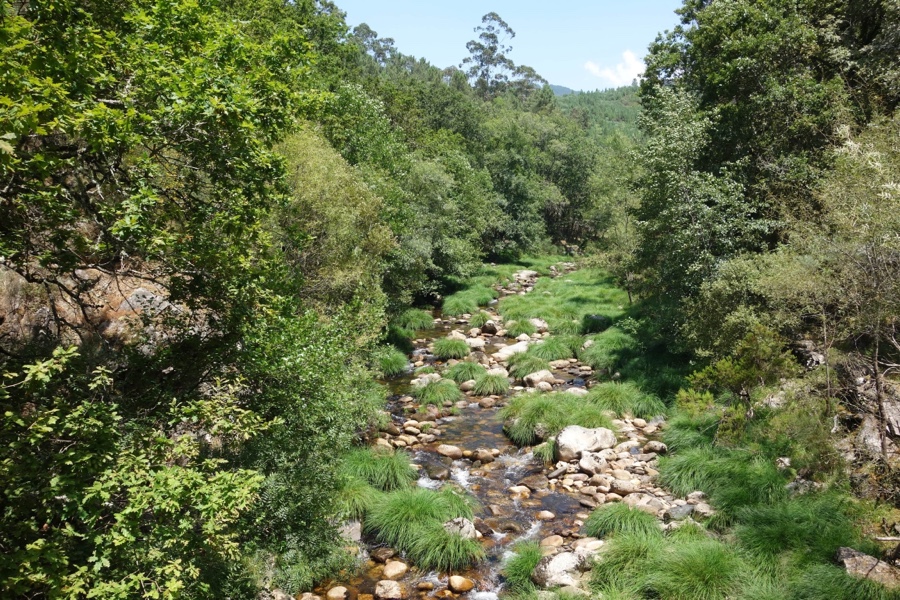 Cruzamos a ponte da Abelheira e reconheço a água do rio pintalgada de vegetação em forma de pompons que há anos tinha apreciado. Aqui é um bom lugar para descansar, tomar banho e até mergulhar.