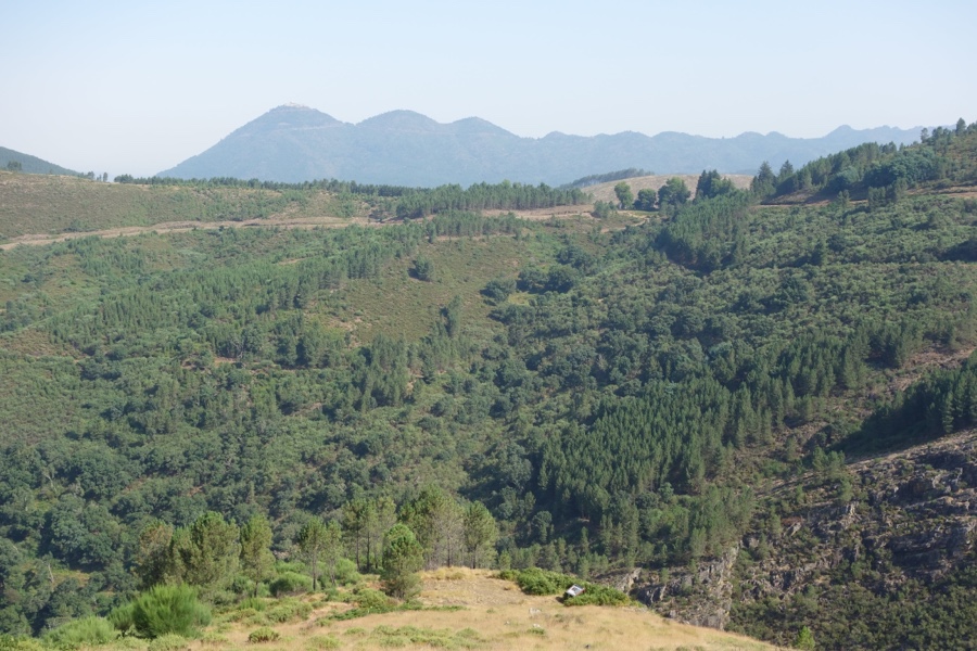 Mais um miradouro, desta vez quase junto às Fisgas e às Piocas, próximo do Alto da Cabeça Grande, talvez o ponto mais elevado da nossa jornada, a 802 metros de altitude (a aldeia do Ermelo, onde começámos, está apenas a cerca de 420 metros).