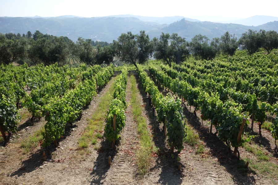 E é por isso que em toda esta zona encontramos das mais famosas quintas do Douro. Este trilho de São Cristóvão não passa por nenhuma delas, mas atravessa muitas outras vinhas particulares. E é por isso que, bem perto, percebemos que já se veem umas uvas, bem verdinhas. Mas as vinhas não estão sozinhas nesta paisagem, antes têm a companhia de muitas oliveiras.